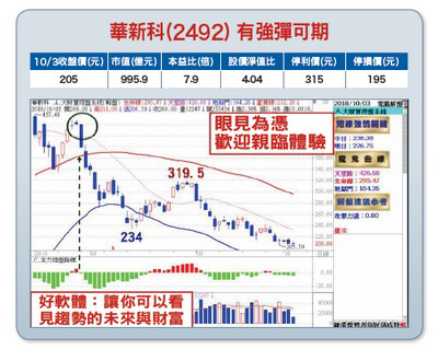 近期台股受中美貿易戰持續歹戲拖棚、新興貨幣市場競貶危機,以及國際油價攀升等諸多變數衝擊影響,仍將持續牽動市場敏感神經及追價買氣意願,特別是隨著美國與加拿大達成貿易新貿易協議後,美國再度劍指中國,川普更肆無忌憚再度放話威脅將對大陸二六七○億美元商品加稅,消息一出,再度引動市場恐慌性賣壓大舉出籠,十月二日指數再度跌破一一○○○點關卡。區間震盪 看個別題材股輪動反彈不過也無須過度緊張,因為隨著年底九合一選舉行情開跑,執政黨必積極護盤,故十月二日指數下殺拉回過程中,可看到八大官股行庫反而逆勢加碼買超,加上第四季為傳統產業旺季,預期整體景氣可望回穩前提下,不至於會有反轉崩跌的危機。從近期網通股聯亞(3081)、散熱模組泰碩(3338)、陶瓷電路板同欣電(6271)、STM廠台表科(6278)、風電概念股上緯投(3708)、建新國際(8367)、世紀鋼(9958)、散裝航運裕民(2606)、台航(2617)、線上遊戲大宇資(6111),以及生技股基亞(3176)、國光生(4142)等一檔接一檔輪動反彈上來,顯見隨著內資買盤亦可望逐步回籠,雖然上檔於前高一一一八六點附近有壓,仍有待時間及信心恢復再帶量突圍而出,下檔預期於一○七五○至一○八○○點附近具強力支撐,區間震盪整理格局就是看個別題材股之輪動表現,重點仍是在個股,只要懂得把握在對的趨勢上,選對的產業,買對的股票,嚴守操作紀律,預期後市仍將賺很大,是未來仍可持續留意的機會。【個股推薦】華新科(2492)為全球前五大MLCC製造商。主要利基題材有:(1)營運與獲利持續往前衝:受惠缺貨漲價題材持續延燒、MLCC出貨持續暢旺及產能陸續開出,八月營收衝破六十億元達六一.五六億元,再創單月歷史新高,月增一一.七七%,年增二一二.三七%,累計前八月營收二九六.九七億元,年增一一八.二九%,稅後純益一一五.六五億元,EPS達二三.九二元,表現優於預期。公司自結八月稅後純益三一.六億元,月增一五.八%,年增八三四%, EPS六.五三元。(2)前景展望持續看好:華新科日前法說會表示,看好聯網汽車、5G及物聯網等應用將帶動中高階MLCC需求成長,目前被動元件設備交期仍長,且內建與外接式聯網車用需求持續增長,聯網車用級被動元件供應持續吃緊,加上今年年中開始,5G及其周邊衍生應用需求飛速成長,截至目前,巿場上沒有新的有能力提供大規模品質可靠的完整系列產品的被動元件供應商,預估被動元件供應將長期吃緊,未來部分中高階品項MLCC缺貨將成為常態,至二○二○年都將供不應求。第四季有十一長假及歐美聖誕節假期,預期整體營運仍是持續看旺,因應客戶需求,華新科也積極擴產,預估今年擴產約二○%,明年也將持續擴產,公司也將進行產品組合優化,預期可增加整體產值,帶動業績拉升。被動元件龍頭村田製造所表示「MLCC漲價無法避免」,供貨吃緊情況將持續到二○一九年後。隨著股價已嚴重超跌,預估整體本益比約僅五倍都不到,在「關鍵K棒」尚未能放量表態上漲前,仍暫不宜躁進,唯一旦止跌契機浮現,則後市將有一波報復性反彈大漲行情可期,可持續留意(※基本面資料若有異動,依公開資訊觀測站最新訊息為主)。【操作建議】低接不追高,目前就待一根「關鍵K棒」放量止跌表態上漲,則後市可望有一波報復性反彈大漲行情,隨時可留意「控盤指標」及「攻擊力道」雙雙翻紅轉強之進場機會,基於風險考量,務請設好停損停利(詳見附圖說明)。