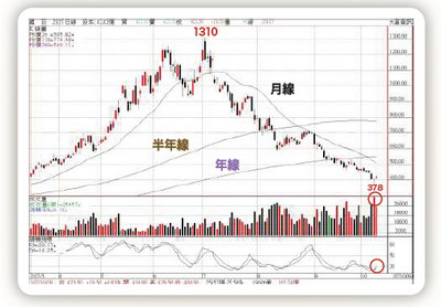 國巨股價七月達一三一○元隨後大跌至三七八元,跌幅高達七二%,若以法人估EPS一二六元計算本益比僅三倍。籌碼部分,董監事大股東持股五二.三%,外資持股五五.二四%,三大法人持股五九.八%(部分重疊),持股多在特定人手中,尤其一三一○元下跌至今外資只賣出八三○四張,目前外資總持股二三.四萬張,有機會演出法人作帳行情。