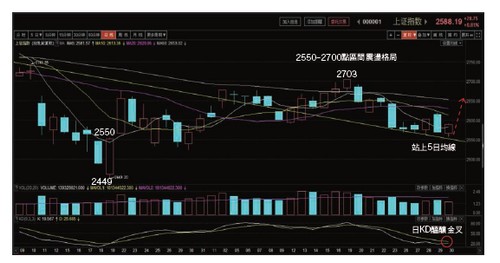 十一月三十日上證指數漲二○.七五點,收二五八八點。量縮價漲的小實體陽線守住三五八七高點下跌以來的長期下降壓力線,在技術面上繼續維持突破後的回測成功的狀態,頗像似誘空陷阱。從均線的結構與控盤的手法推測屬於底部區的震盪格局,下方的支撐就是十月二十日的二五五○點的大陽線,至於上方的壓力暫時仍以季線附近的二七○○點整數關卡為觀察。有可能複製類似上證50指數從七至十一月就處在二三○○至二六○○點空間震盪,因此不排除二四四九低點以來的政策護盤將持續到明年的三月兩會之後,構成二六○○上下二百點的築底震盪。資金轉向防禦型投資策略 聚焦藍籌股十一月的行情是架構在政策解決民企融資困難與股權質押的低價股流動性危機,迭加科創板的設立讓低價股整整投機炒作了一個月。隨著G20高峰會召開,即將面對中美貿易協定談判的結果,因此市場開始採取防禦型投資策略,資金轉換到具有基本面的藍籌股布局,也正好符合機構最喜歡的模式之一,春季行情效應,因此接下來整理已久的藍籌股有機會成為市場的焦點。而前三季度每股收益前二十五名的業績股,分別是貴州茅台(19.69元)、吉比特(7.05元)、長春高新(4.93元)、洋河股份(4.67元)、中國平安(4.34元)、海螺水泥(3.91元)、寒銳鈷業(3.65元)、格力電器(3.51元)、合盛硅業(3.35元)、萬華化學(3.3元)、三鋼閩光(3.17元)、歐派家居(2.86元)、銳科激光(2.85元)、邁為股份(2.71元)、美的集團(2.69元)、大商股份(2.67元)、招商銀行(2.67元)、雲南白藥(2.62元)、華夏幸福(2.62元)、揚農化工(2.54元)、方大炭素(2.53元)、滄州大化(2.5元)、古井貢酒(2.49元)、新華保險(2.47元)。受益美元下跌 金屬類原物料反彈先前提示到,從比亞迪、萬科A、中興通訊、隆基股份等股價走勢來看,前兩年領先拉回修正的新能源車、地產、5G、太陽能等產業可能出現否極泰來的觸底上漲。可留意先導智能、海得控制、嘉化能源、中國動力、福斯特、森源電氣、新宙邦、當升科技、贏合科技、坤彩科技、中炬高新、天孚通信、碩貝德、金科股份、保利地產、新城控股、嘉凱城、雲南白藥、白雲山、恒瑞醫藥。由於美聯儲主席鮑威爾在十一月二十八日的公開演講表示美聯儲基準利率已接近中性水準,被市場解讀二○一九年可能加息一至二次數後就要暫停升息,利多原物料。加上美原油已經跌到每桶五十美元,因此有可能在未來的一季度,金屬類的原物料板塊將受益於美元的下跌而反彈。未來更多關注在本業的業績成長就板塊角度,目前市場最熱中的題材是科創板的潛力企業名單,一般推測大多集中在高科技產業,如大數據、人工智能、生物醫療等板塊,媒體陸續揭露A股公司培育科創板企業的名單,受到新華傳媒參股深藍科技的股價亮麗表現刺激,海得控制、耐威科技、東軟載波的股價都有不錯的表現。在跌停板的二十三支票中的漢邦高科、正元智慧,再加上正業科技都是高送轉概念股,由於政策明確規定將高送轉與業績高成長捆綁一起,在整個宏觀經濟成長趨於穩定成長的情況下,預期將來符合高送轉條件的公司不多,可以說今後關注的焦點就是高分紅概念,但估計市場需要時間接受,因此過去市場習慣炒殼、炒高送轉、炒ST、炒重組等題材將會逐漸的式微,未來就是看本業的業績成長。