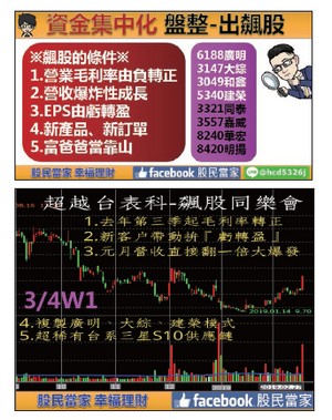 二○一九年二月二十五日至二十八日MWC世界行動通訊大會上,各家手機新品發表會吸引眾人目光,新開發的兩款新機在市場引起廣泛討論,可以窺知今年的投資趨勢,當然價格之高貴也讓人嗅到新產品商機。三星首款可摺疊螢幕手機 Galaxy Fold,將於四月起陸續上市,建議售價一九八○美元(約六萬九七五元台幣),螢幕完全摺疊時,正面四.六吋,21:9螢幕適合單手操作,搭載Qualcomm Snapdragon 855行動平台,4380mAh電量,提供無線電力分享,也就是說手機本身可以成為行動電源,可幫其他裝置提供無線充電,機身共多達六顆鏡頭,而關鍵零組件─摺疊機軸實際測試,開合次數可高達二十萬次,若以一天開合一百次計算,可開合五年。華為推出首款5G摺疊手機Mate X,未展開的主螢幕為六.六吋,背面螢幕也有六.三八吋,展開後則有八吋,側邊凸起的把手上有三顆鏡頭,展開厚度為5.4mm,完全對摺後是11mm,採用Balong 5000通訊晶片和麒麟980處理器,雙卡槽設計,4500mAh電池和55W超級快充,定價二二九九歐元(約八萬多元台幣)。從這兩款手機可以發現幾項元素:可摺疊、多鏡頭、機軸、軟性AMOLED螢幕、最新款通訊晶片、超級快充、無線充電…,這是非蘋陣營最新旗艦機,相關概念股就相當值得大家期待,軸承族群龍頭廠新日興(3376),與第一家推出摺疊手機的韓系大廠關係密切,兆利(3548)、信錦(1582)同步大漲,信錦是全球第一大監視器暨軸承底座廠,全球市佔率高達二五%,同樣興起比價效應。多鏡頭更進一步推升光學族群,大立光(3008)、玉晶光(3406),陸資入股的新鉅科(3630),在持股三六%大股東港股丘鈦大漲比價下,只花四個月從五十元站上百元關卡,另外鴻海投資光學鏡頭精密模具的中揚光(6668),股價也在底部剛剛起漲!軟性OLED概念股,薄膜晶體管基板將採用具有耐高溫特性的聚酰亞胺(PI)薄膜,代表股是達邁(3645),相關概念股還有明基材(8215)、誠美材(4960)、正達(3149)、安可(3615)、聯享(3678)、永捷(4714)、錸寶(8104)。USB Type-C充電轉接頭快速充電,最重要的是電源管理IC設計晶片概念股,天鈺(4961)、昂寶-KY(4947)、偉詮電(2436)、通嘉(3588)、致新(8081)、創惟(6104)都值得留意。另外聯發科(2454)也推出Pump Express Plus快充技術,可透過USB充電器以最大輸出電壓12V輸送高達15W以上的能量,在三十分鐘內就能將完全沒電的手機電池充電至七五%,比起傳統充電技術快五倍,此外5G新晶片Helio M70也開始發酵,股價完成六個月大底,吸引法人資金進駐。最後LEO最看好的是無線充電商機,摺疊機價格貴森森,到底能創造出多少銷量考驗市場的接受度,機軸、軟性OLED與之息息相關,但多鏡頭已是趨勢,主要在高階旗艦機,但不管非蘋或蘋果陣營,支援無線充電的手機會越來越多,尤其非蘋陣營無線充電板便宜、性價比CP值高,出貨量將大幅成長,尤其是小米、OPPO、華為、VIVO…等陸廠的出貨帶動下,將大放異彩。蘋果方面無線充電板AirPower傳出第一季已開始進入量產,同時有機會在上半年問世,無線充電概念股新唐(4919)、盛群(6202)、迅杰(6243)、聯昌(2431)等,微控制器(MCU)廠也可望開始放量出貨。凌通(4952)為台灣第一家取得Qi認證的公司,在無線充電MCU由於成功打入蘋果行動周邊配件品牌,出貨量有兩千萬套的實力,可說是台灣IC設計最佳廠商,致伸(4915)除了無線充電題材外,還切入亞馬遜新手機的相機模組供應鏈。電源供應器大廠全漢(3015)推出獲Qi認證的無線充電板,除了智慧型手機可充電外,未來還將應用在平板電腦與穿戴裝置,同泰(3321)成功打入韓國與美國手機大廠供應鏈,目前韓系無線充電軟板已開始出貨,股價在低檔具有長線爆發力。投資就是從日常生活中找商機,更多投資訊息,請鎖定LEO的股民當家Line生活圈群組@hcd5326j,成為LEO好朋友,以股民當家-幸福理財為最高宗旨,挖掘股票背後的股市。