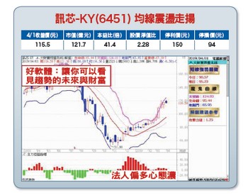四月台股仍充滿許多挑戰,最主要原因在於投資人對未來經濟前景與展望充滿不確定性與不安全感,儘管頸線壓力區一○七○○點以上套牢籌碼壓力仍需時間消化,不過,David要跟大家說的是,後市行情不必看得太過於悲觀,各位想想:一、目前全球金融環境是否有泡沫化的危機出現?很明顯並沒有!二、美中貿易談判進展樂觀,隨時可望達成協議,可望為全球景氣注入一劑強心針。三、美聯準會心態極度偏鴿,美元資產魅力降溫,有利亞洲新興市場國家重獲資金動能。四、晶圓代工龍頭台積電自三月下旬已明顯感受客戶訂單慢慢回升,預期今年景氣將可望一季比一季好,顯見半導體及零組件庫存去化已近尾聲。五、目前整體融資餘額仍處於一二八○億元左右歷史相對低檔位置,市場過度謹慎,並未樂觀到反轉的地步。俗話說:「行情總在悲觀與絕望之中誕生,在半信半疑之中茁壯成長,在樂觀氣氛下步入毀滅」,在內外資法人力挺偏多不變,不僅權值股台積電持續穩步震盪盤堅上漲,蘋概股鴻海旱地拔蔥止穩強彈大漲,光學股玉晶光持續軋空大漲,包括網通概念股星通、散熱模組雙鴻等也一檔接一檔止穩強彈大漲,顯見市場人氣都還在,整體行情仍在多方掌控之中。面對盤勢進入緩步震盪盤堅過程中,只要把握住「低接不追高」原則,慎選優質好股,並隨時做好風險控管,就算短期指數遇壓或有震盪拉回,唯下檔不論是月線或季線附近均具有強力支撐,不必過度緊張,重點還是在個股。【個股推薦】訊芯-KY(6451),隸屬鴻海集團系統模組封測廠。主要利基題材有:(1)二○一八年第四季獲利大爆發,每股淨利一.九八元:受惠集團協助取得3D感測VCSEL(垂直共振腔面射型雷射)晶粒封裝訂單並進入量產,加上同集團鴻騰精密對訊芯-KY擴大釋出100G光收發模組SiP封測代工訂單,去年第四季合併營收季增二三.三%達十五.一七億元,年增七二.六%,平均毛利率季增六.五個百分點達二七.七%,歸屬母公司稅後淨利季增九○%達二.○九億元,較前年同期大增逾二十二倍,EPS一.九八元,優於市場預期,不論是毛利率、營益率及獲利皆創二年新高。去年上半年營運不盡理想,下半年才明顯轉好,不過,去年全年合併營收仍繳出四四.六六億元好成績,年增四一.八%,歸屬母公司稅後淨利達二.九八億元,年增六八.五%,EPS二.八三元,優於法人預估。(2)5G加持,營運一路看旺至年底:新款iPhone銷售成績不理想,不過,隨著搭載3D感測Face ID功能產品線變多,預期今年蘋果3D感測元件需求將較去年遞增,加上5G基礎建設工程帶動100G光纖網路SiP模組出貨維持高檔,累季前二個月合併營收達八.五四億元,年增五○.四%,表現優於預期。展望今年,除了持續受惠鴻海集團加持,3D感測VCSEL晶粒封裝、100G光纖網路SiP模組等訂單不看淡,加上全球5G基礎建設加速進行,對400G光纖網路SiP模組需求大增,包括射頻天線、PA及前端模組等都要採用SiP技術來進行異質晶片整合,預期在鴻海集團協助下,訊芯-KY將可爭取到更多5G相關SiP封測及模組代工訂單,營運可望重返至二○一五、二○一六年水準。【操作建議】低接不追高,公司營運看俏,短中長期均線震盪走揚,中多行情展開,內外資心態力挺偏多,下檔只要守穩九十四元關卡不破,隨著「控盤指標」及「攻擊力道」亦能夠雙雙維持翻紅轉強態勢,後市股價仍有持續往上挺進機會(※基本面資料若有異動,依公開資訊觀測站最新訊息為主)。基於風險考量,設好停損停利(詳見附圖說明)。