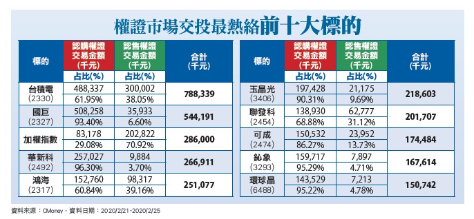 經濟部公布一月外銷訂單表現,受產業淡季及春節工作日減少影響,比較基數相對較高,導致外銷訂單年減一二.八%,其中,資訊通信及電子產品接單動能減緩。展望未來,新冠肺炎(COVID-19)疫情持續延燒,短期內恐將影響消費、生產及出貨,不利全球貿易成長。以主要貨品類別來看,資訊通信產品因年終銷售旺季已過,智慧手機、筆電及伺服器接單減少,僅九十七億美元,月減三成,年減一七%,其中,歐洲及美國市場衰退最多。電子指數反彈後拉回又失守月線,守住本周低點不破仍可維持震盪整理走勢。金融指數強勢反彈,雖逢前高壓回,但五日線不破,盤堅挑戰前高格局未變。未含金電指數弱勢反彈逢月線壓力而震盪,若站回月線,仍有補漲挑戰季線機會。雖中國大陸疫情與股市成平行時空,但國際股市仍受疫情影響而震盪,台灣中小學開學,市場擔憂疫情將更加險峻,加以台股技術面上方壓力重重,且台幣明顯走貶,市場心態趨於調節,在上檔有壓、市場心態略偏保守下,短線指數維持震盪築底走勢,然美、陸股市維持強勢,台股短線重挫風險亦不高。