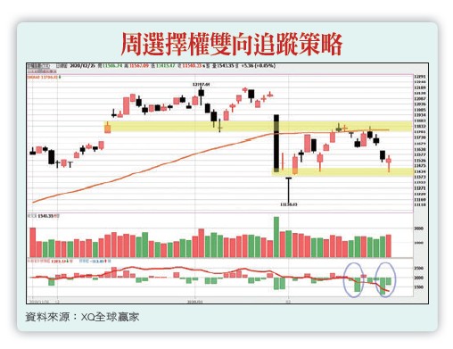 投資人對疫情的擴散狀況感到擔憂,全球股市在二十四日遭遇到大幅調整,觸發了投資人避險意識的警鈴,資金開始加速湧向避險資產。首先,美國三十年期公債殖利率跌破一・九%創下新低。美元指數自一月底開始一路從九十七・三衝上九十九・八,漲幅高達二・五七%。而黃金價格站上一千六之後,現在更是直線朝著一千七邁進。現在投資人開始期待聯準會是否再次降息,來維持市場穩定性。疫情擴散開來後,影響的層面已從供應鏈的運作穩定性,升級到全球的消費需求轉弱。回到台股來看,外資在二十四日當周出現了第二波的調節潮。現貨市場單日二百六十三億賣超,並在後續維持調節的節奏。資金面的表現,受到全球資金回流美元避險趨勢的影響,台幣匯率持續走貶來到三十・四元的位置,顯示資金已從台灣匯出。資金的出走,對台股後市形成較為不利的局面,預計將拉長指數整理的時間。進一步觀察法人的期權未平倉部位,首先是外資在台指期的未平倉,淨多單已掉到二萬六千多口附近的水準,意味著外資對台股後市看法偏向保守。而自營商的選擇權未平倉分布,買權為Sell Call並從一萬三千多口大幅加碼至四萬三千多口,賣權Sell Put則維持在八萬二千多口,代表自營商對台股短線看法進入中性整理。整體看下來,台股技術面預期落在一一四五○至一一八○○點的區間內震盪整理,籌碼再次回到中性立場,市場無方向性共識,波動也較易放大。可在指數貼近整理區上下緣時,以突破(買方跨式或勒式)策略來佈局。