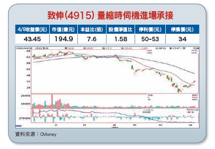 某股是電腦及手機周邊製造廠,主要營運動能來自電聲產品(佔55%)及相機鏡頭模組(佔15%),其中電聲產品具技術領先優勢,尤其在智慧喇叭方面,部分產品的毛利率可高達30%~40%。受惠聲學多項新品出貨挹注,二○一九年每股獲利達四.八元創新高。某股為致伸(4915)以往公司產品以喇叭為主,二○一八年新增無線耳機新訂單,致伸另一成長動能在手機鏡頭模組,主要客戶為華為、OPPO及魅族等中國大陸一線品牌,隨著雙鏡頭滲透率提升,可望帶動致伸獲利的提升。展望未來,致伸今(二○二○)年主要動能在耳機客戶及新案數量的提升,產品涵蓋TWS(真無線藍牙耳機)、高階耳機、電競品牌耳機等。在人機介面方面,推出高度客製化的電競鍵盤或滑鼠,至於工業4.0部分,致伸強調產線模組化設計,推出客製化機械人及機械手臂。此外,致伸在光學應用方面,推出微小相機模組,以更多不同的樣貌擷取並重組影像,包括超廣角、360度環景、多鏡頭組合,再到結構光3D感測,目前已出貨360度可錄影眼鏡、軍警執法用Bodycam,以及駕駛監控鏡頭,成長潛力值得期待。【操作建議】股價於三月十九日三十四元落底後緩步回升,由於成交量並未異常放大,顯示中期籌碼已安定,若能站穩月線支撐,中期有機會向起跌點五三.五元邁進。