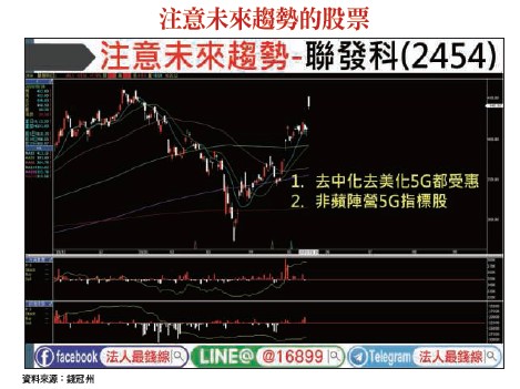 美中貿易戰捲土重來,上周五美股漲跌互現,美國擴大打擊華為力道,商務部發布新出口限制令。中國官媒透露,中國政府會啟用不可靠實體清單反制美方,點名調查蘋果、高通、思科等美科技大廠,拒買波音飛機。費半跌2.2%,蘋果下跌0.59%、高通下跌5.08%、應用材料下跌4.39%;台積電ADR(TSM-US)下跌4.4%。但是這樣的短期消息面利空卻反而是中長期布局的機會,因為下半年旺季即將到來,在二○二○年上半年因為新冠疫情而急凍的消費動能極有可能在接下來的第三季與第四季爆發,因此,目前不但不會是賣點,反而是積極布局進場下半年主流股的機會。以手機產業來說,我們看好下半年起產業復甦,上半年遞延的Android有機會在第三季大量鋪貨,而Apple的iPhone 12我們仍預期會在今年第四季出貨,上半年所壓抑的消費加上下半年原本的旺季,下半年在疫情逐漸退散之後將會很有表現的機會。高檔股不追或出脫,密切留意低檔轉強股的操作機會!短線進出賺價差,是老師目前的操作方針,其實道理很簡單,本來台股現階段就面臨技術面反壓,短中線有回檔壓力,但是產業個股則準備進入疫情過後的機會,所以老師認為在產業回升以及外資將要大幅回補的利基之下,這裡反而是要積極的時刻,而若長線有疑慮老師也會提醒大家,這些也都在老師的Telegram(ID搜尋:法人最錢線)裡闡述得很清楚!第三季看Android 第四季迎接蘋果iPhone 12 現在就是布局契機 產業面及消費需求面在上半年的疫情壓抑過後,我們預估新冠疫情將要進入尾聲,那麼在上半年所遞延的買氣及消費,就極有可能在第三季起爆發,因此,在目前行情震盪之際,哪些產業或族群將會是下波主流,就是目前要集中火力的焦點,例如OLED面板驅動IC相關,其中IC設計的聯詠(3034)及IP授權的力旺(3529)可以注意。以矽智財供應商力旺來說,受惠於下半年在OLED、影像感測器、TWS耳機、機上盒、SSD、物聯網及DRAM等需求佳,公司業績成長動能看至明年,以目前股價來看,仍是剛剛轉強的階段,外資及投信都處於同步回補的趨勢,後續股價就相當讓人期待。注意外資回補行情 疫情過後 產業回升支撐長期走多資金行情+景氣回升行情會是今年下半年最大的亮點,而外資經過先前的股市大逃殺,後續在外在不安因素和緩過後就有機會迎來回補的契機,當然這方面的總經訊息也都是老師在影音及Telegram會持續追蹤的部分。再來就是產業面,假設下半年產業復甦,那麼緊盯回升訊息的變化,就會是接下來的重點,而最新變化的金融市場資訊也持續會在老師的Telegram(ID搜尋:法人最錢線)持續追蹤,這也是希望大家除了在周刊、盤後影音看老師的分析之外,也要在Telegram隨時注意老師的發文及對金融市場的看法。