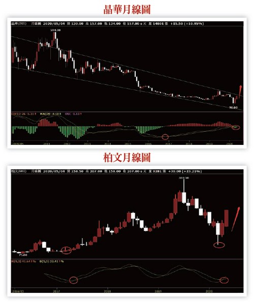 而第一季在疫情的突然衝擊下,只有王品虧損,其餘都是賺錢,其中更以豆府(一.七元)、瓦城(一.二五元)、晶華(一.一六元)的每股稅後盈餘超過一元,就現金股利殖利率來看,晶華六.三九%、豆府四.四四%、瓦城三.九一%,從技術面走勢來看,也都反彈到年線壓力附近,屬於相對強勢的個股,可留意追蹤。