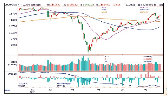 近期因為市場憂心美國跟中國恐爆發第二波疫情感染,加上先前股市漲幅已大,美股和台股分別都在六月十一日出現爆量長黑。故針對後市看法不變,美股除非近期能上去回補六月十一日的空方缺口,否則美股四大指數都出現高檔由多翻空訊號,將進入整理或修正。