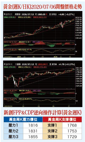 黃金周K線收一根帶長上影線陽線,在突破一八○○關卡後,收盤價最終回落到一七九八,可見一八○○的壓力仍然很強。從黃金(日K) 運行在三角楔形末端的形態來看,一旦向下跌破,將展開向下調整的機率大。因此,本周逢高參與黃金放空。