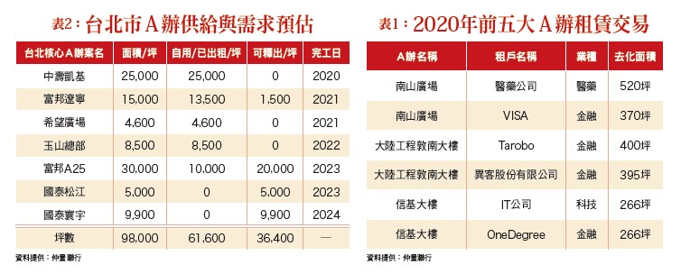 他談到,二○二一年新釋出供給將僅剩約一千五百坪的面積,而到二○二三年後,信義區和非核心區才會有將近三萬五千坪的租賃新供給釋出,屆時才可望能舒緩核心區內的辦公需求。