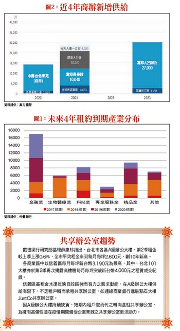 針對未來的租金走勢,三家外商的看法一致,陳頌民表示,由於台北市商辦空置率現已處於歷史低檔,預料下半年A辦租金仍將維持○.五%「穩中有升」的增幅,預計在二○二三年市中心的新大樓相繼落成後,商辦市場可望再掀一波高潮。