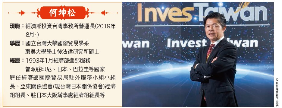 投資台灣招商引資,目前是由經濟部投資台灣事務所負責,營運長何坤松提到,過去二、三十年來,台灣產業外移嚴重,甚至有空洞現象,考量人工成本,外移的基地以中國大陸及東南亞為主,兩年前因為中美貿易戰,在關稅壓力下,廠商開始轉移生產基地,前行政院長、即現任副總統賴清德責成規劃台商回流方案,新冠肺炎疫情爆發,台廠都有認知,不要把生產基地過度集中在中國大陸,希望台商在選擇生產基地時,可以再度選擇台灣。