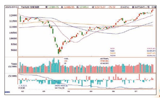 美股進入超級財報週,台股也將陸續公布半年報,加上國外疫情持續升溫,以及前幾次大漲過後,目前美股和台股與季線和年線仍有不小的乖離,所以現階段指數進入高檔震盪,甚至在八月中公布半年報前,有機會至少回測月線上下支撐的看法仍不變。