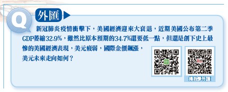 自疫情爆發以來,美國政府施行降息、買債、補貼等QE寬鬆政策,雖然美股因此而得救,但實質的經濟狀況似乎沒有好轉,加上最新第二輪紓困專案送審,投資人擔心美國政府救市政策會造成通膨高漲,美元避險地位岌岌可危。