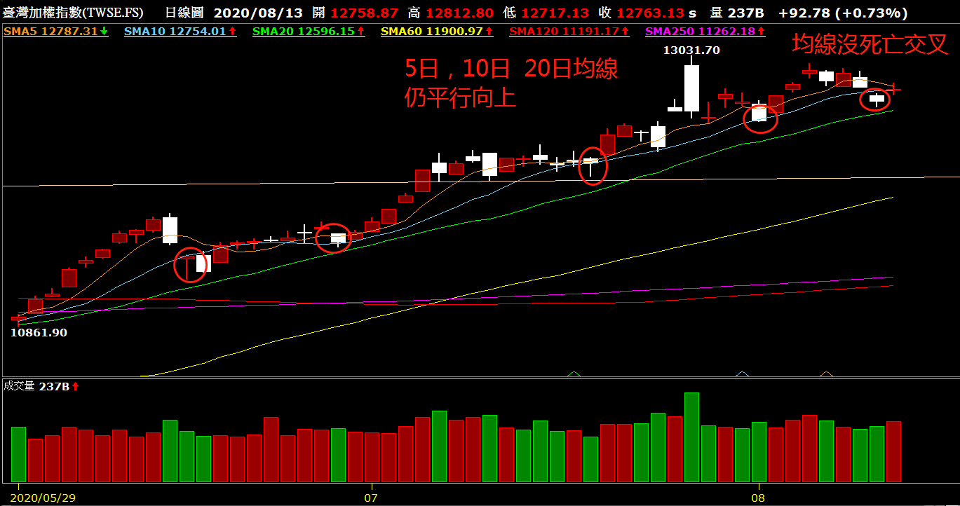 俄羅斯註冊全球首款新冠病毒疫苗,雖然沒有第三期的千名自願者的數據,但該款疫苗研發已2年多,是針對伊波拉病毒所做的研究,情況類似瑞德西韋當初也是針對伊波拉病毒所研製的解藥,同樣缺乏三期的數據,直到這次COVID-19病毒舊藥新用派上用場,雖然瑞德西韋解盲失敗,但仍有68%有效(對亞洲型無效),因此大膽推測,俄羅斯註冊的新冠病毒疫苗的效果很有可能也不是很高,但美國CDC表示只要有50%的效果,就會批准,將來可能是要施打多劑達到一定時間內的保護作用,而不是類似麻疹、天花等疫苗是永久性的。對台灣來說,注定要在這場疫苗戰居下風,因為台灣的確診人數太少,無法做人體實驗,所以國光生與高端疫苗的走勢越來越疲弱,另外耳溫槍的需求也不容易再出現類似上半年那樣的大量急單,對於松翰、紘康、熱映等測量體溫的相關個股都缺乏利多。