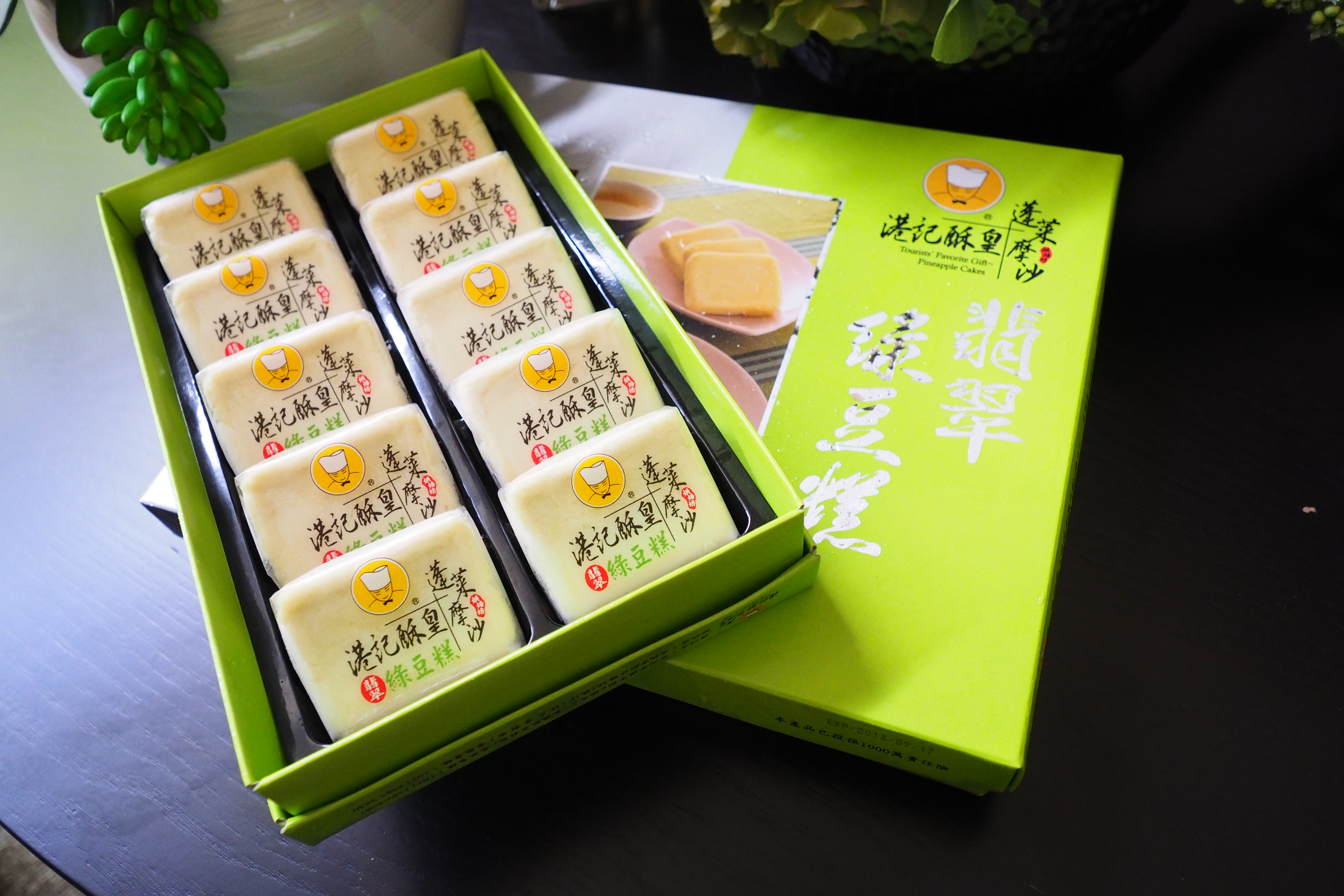 「翡翠綠豆糕」為港記酥皇重量級商品,年銷近百萬顆,手工製作,冰冰涼涼、綿密柔細的口感,征服港台明星的味蕾,是許多香港人來台旅遊必帶伴手禮。