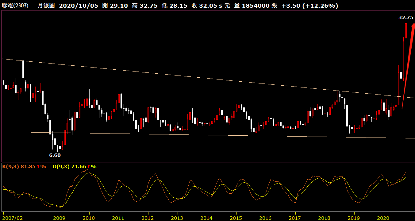 事實上,雞尾酒療法還真的起了作用,川普宣布十月十二日重返競選團隊,金融市場相信川普只要在任一天,股市就算跌下去,也會漲回來,所以多頭的信心仍強,十月九日的費城半導體指數再創2403點新高,十月十三日iPhone 12發布,台積電也傳出拿到美國商務部的華為供貨許可,再加上中芯禁令的八吋晶圓的轉單效應,讓半導體族群一一轉強,台積電、聯電、聯發科、華邦電等龍頭股上漲,激勵買盤回流,IC設計族群重新復活,盤面擺脫八月份半年報以來的低價股當主流的格局。