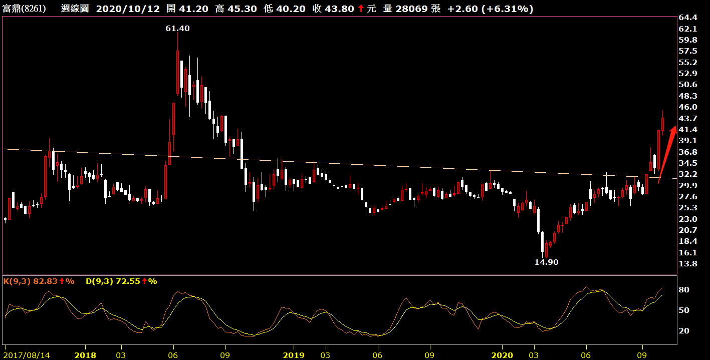 中高壓超接合面可同時具備高耐壓及低電阻等特性,且成本僅介於MOSFET及較高價的IGBT中間,因此被視為升級版的MOSFET產品,富鼎在中高壓超接合面成功拿下戴爾(DELL)、惠普(HP)及聯想(Lenovo)品牌的電源供應器訂單,目前已經開始放量出貨,單周股價大漲23%後,又續創45.3元新高。