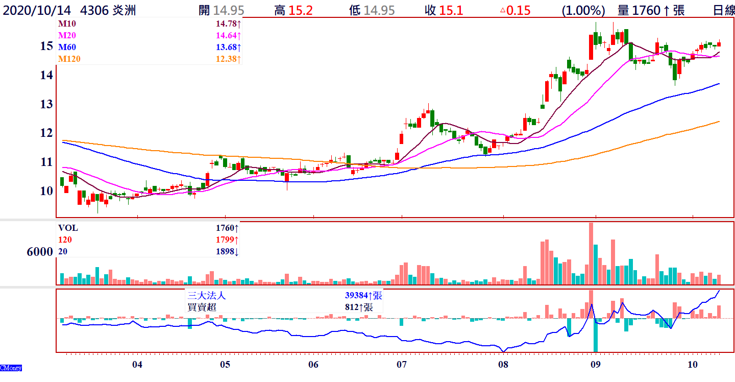 炎洲(4306)因砍掉或停產虧損單位,加上膠帶業務升溫,第二季毛利率從去(二○一九)年一二%提高至一七%,帶動本業轉虧為盈,EPS為○.六四元,上半年EPS為○.三元。
