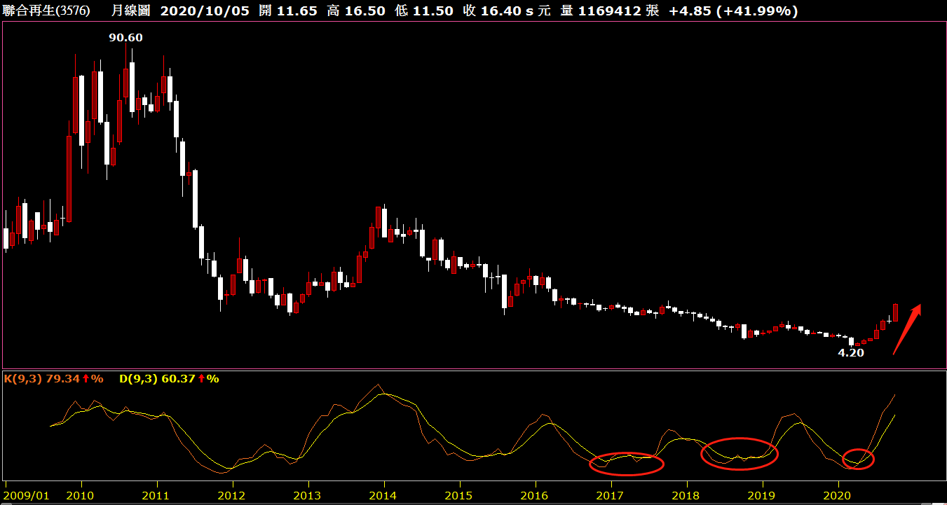 不能融資的聯合再生,單季EPS仍虧損,月營收累積年增率也維持在-30%左右的衰退,從業績上來看,轉虧為盈的題材仍遠,但今年股價已經漲了114%,顯然市場著眼的是儲能時代來臨,聯合再生的大型工商儲能貨櫃「ZEUS」等多款新世代產品訴求安全、穩定、可靠為主軸,獲得全球第一家經由UL實驗室驗證,通過UL9540各項儲能系統測試肯定,在太陽能平價時代發電廠不僅只關注電池的轉換率,儲能需求起飛,是下個決戰場。
