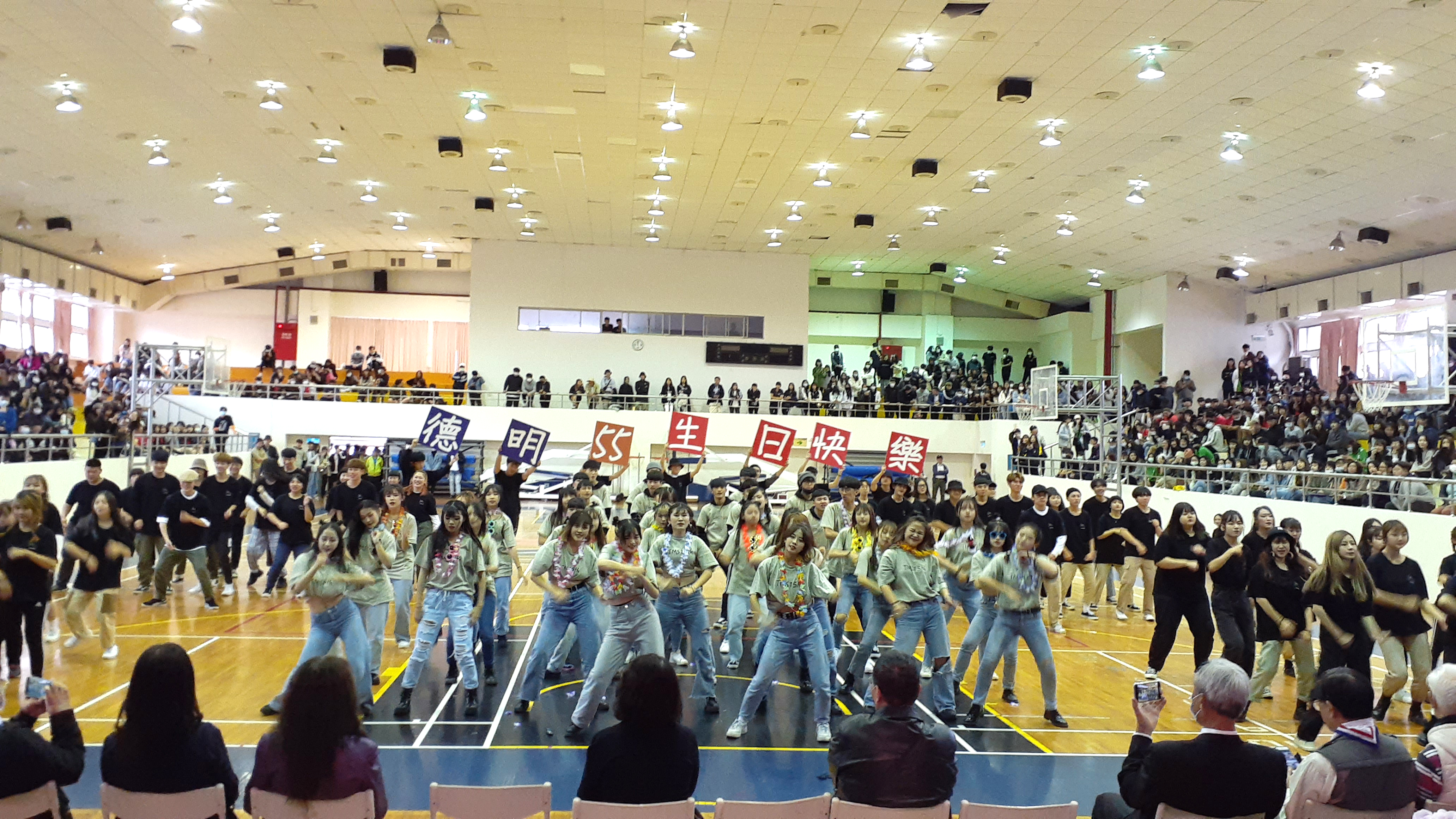 德明財經科技大學歡慶五十五周年,大會以「無動不舞、虎虎生風」、「五光十色、五洲名揚」為主題意象,一曲青春熱舞,拉開運動會序幕,與會來賓皆感受到學生的熱情與奔放。