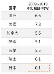 資料來源:Willis Towers Watson, Global Pension Assets Study 2020,統計期間2009年至2019年。