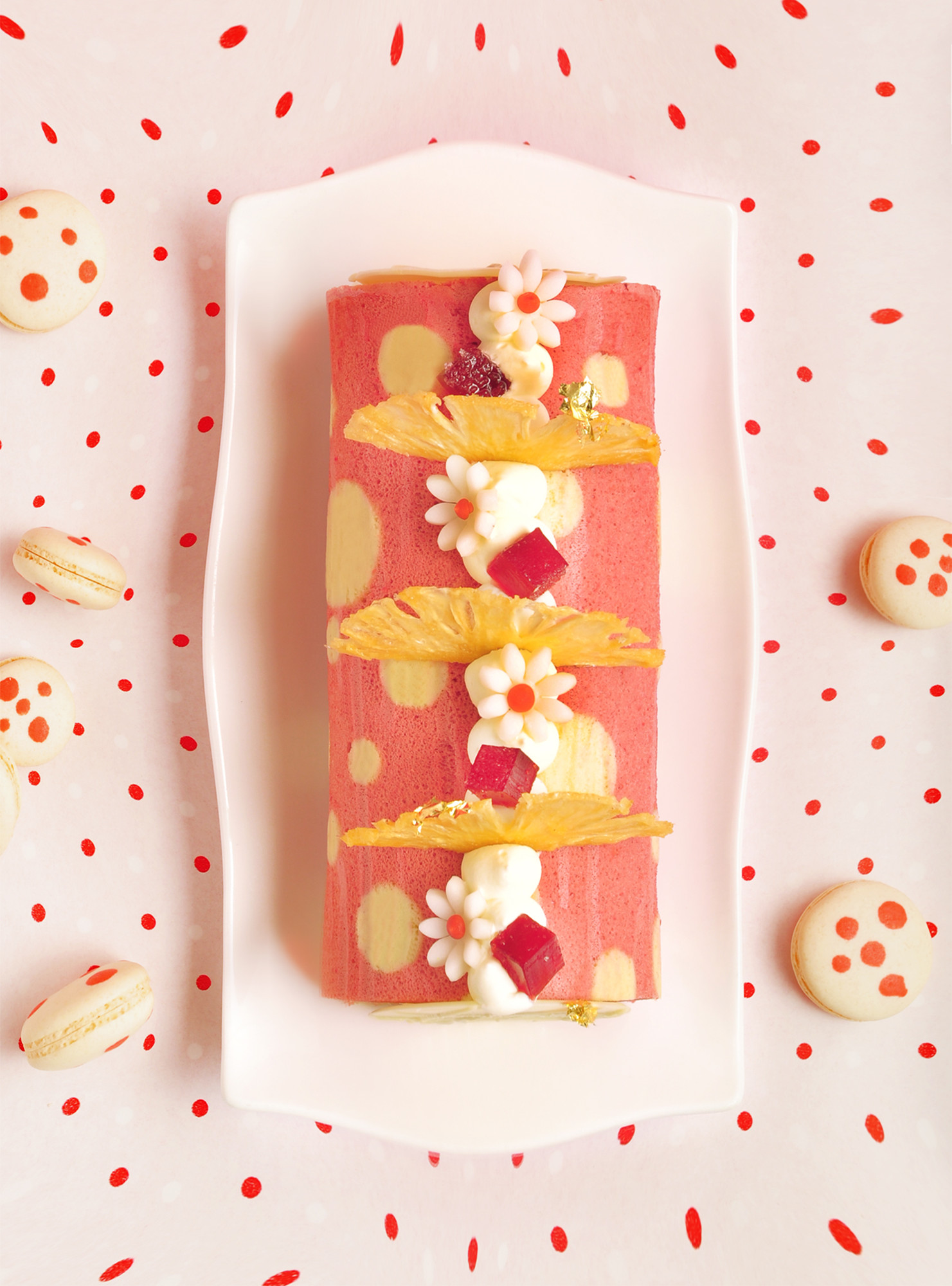 另一款以台灣金鑽鳳梨為主角的母親節蛋糕捲「戀夏鳳梨」,定價600元。以經典的北海道鮮奶油製成細滑輕盈的香緹內餡,添入主廚親自熬製的鳳梨醬、鳳梨果泥,外圍以新鮮的鳳梨果肉點綴,打造出清爽不甜膩的內餡,讓人滿口盡是馥郁鳳梨香氣。兩款蛋糕於5/5前訂購,享9折優惠。
