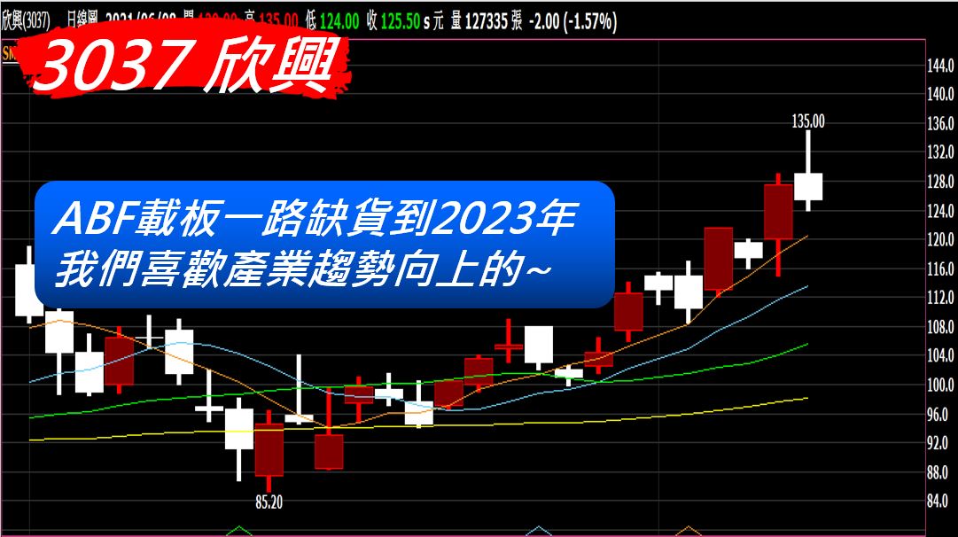 操作上我們喜歡往趨勢向上,前景相對透明的產業來做佈局,好比說我們近期在群組一再分享的ABF載板─欣興(3037)、南電(8046)、景碩(3189)。