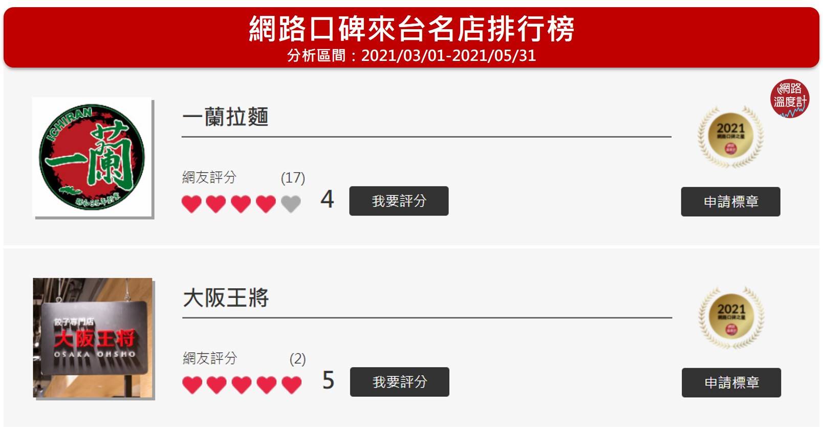 image source:網路口碑飯店商旅-星等排行(分析期間:2021/03/01~2021/05/31)