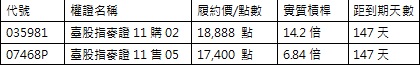 風險提示: 權證為高槓桿投資商品,有機會在短時間獲得極高報酬或蒙受權利金的損失,購買前請先了解相關風險及詳閱公開說明書。