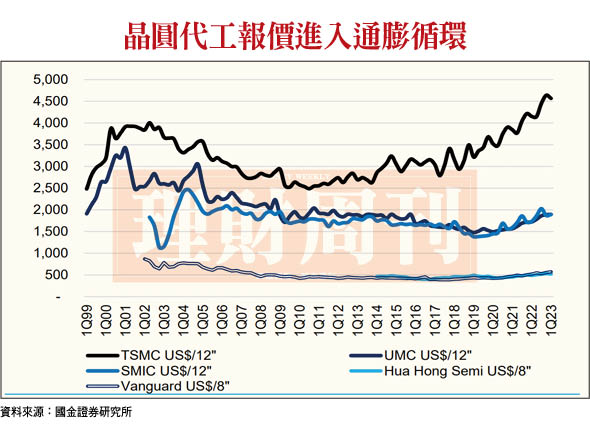 第三則是成熟製程產能擴充緩慢,廠商供給增加速度遠不及市場需求增加速度,出現常態性供不應求的結構性產能缺口,缺貨漲價也就成了新常態。市場預期未來十年全球半導體通膨將成為長期趨勢,晶圓代工報價將以五~一○%的年複合成長率逐年上漲。