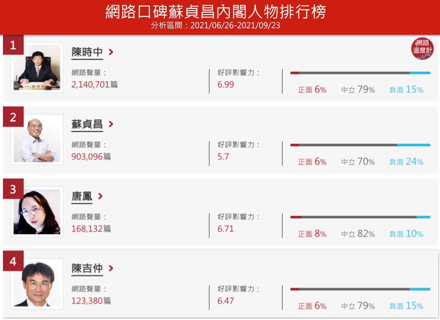 唐鳳又出手了!被稱為天才IT大臣的行政院政務委員唐鳳,最近人氣、網路聲量相當夯,根據《KEYPO大數據關鍵引擎》(2021/06/26~2021/09/23)所做的口碑排行調查,蘇貞昌內閣團隊閣揆、閣員的網路聲量排名,唐鳳口碑排名位居第三名,僅次於陳時中、蘇貞昌。