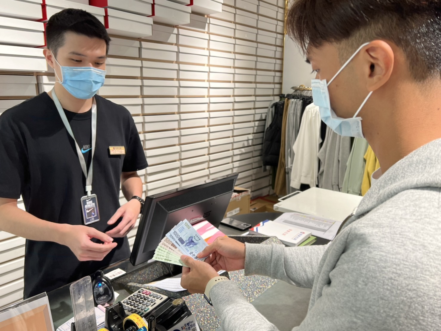 板橋大遠百營業主管觀察,10月8日一早開門即有許多民眾手持紙本振興五倍券入館採購,開館不到兩小時,即有三成比例使用紙本振興五倍券結帳,看好後續振興五倍券帶來的效益。