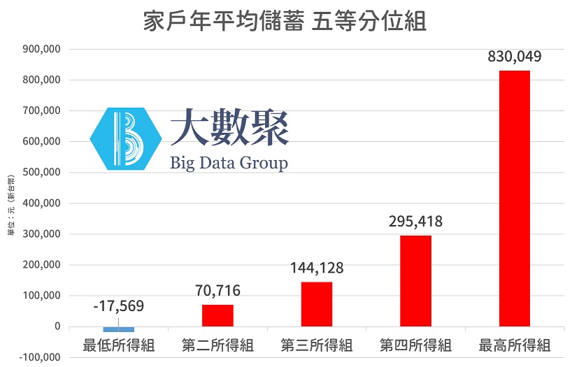 ●台灣家戶年儲蓄統計,中位數僅14.4萬元