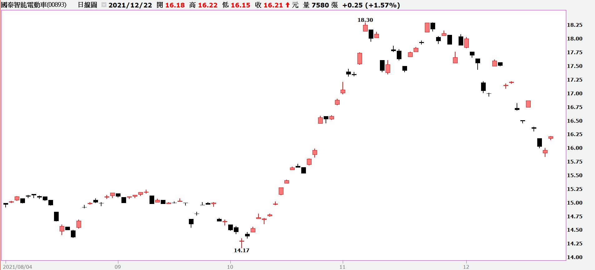 值得一提的是,美股與滬深股市的鋰電池與電動車族群因這個利空而大跌,反倒是台股的鋰電池族群呈現利空觸底的訊號,領先股三晃具備三元電池負極材料的題材,十二月二十一日至二十二日大漲超過15%,帶動正極材料的美琪瑪、康普也重回均線多頭排列。