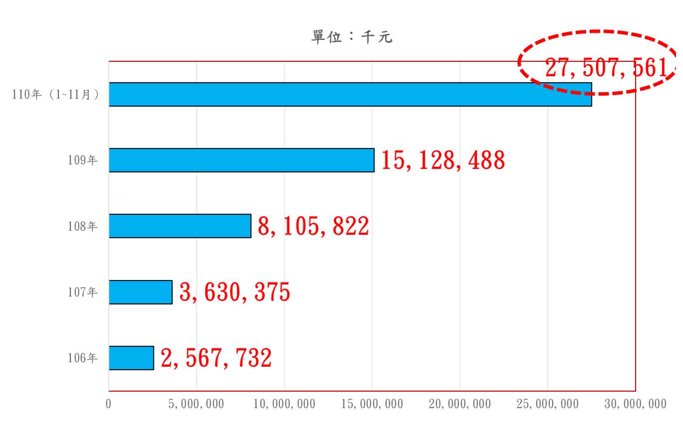 2020年下半年以來,政府為遏抑排隊買房等投機炒作行為,連續祭出四次選擇性信用管制措施,惟實際效果相當有限,房地價格仍持續呈現大幅飆漲情況;此可由房地合一稅實徵金額由2017年的25.68億元一路暴增至2021年(1-11月)的275.08億元,其中營利事業部分151.62億元,個人部分417.78億元(詳請參閱附表、附圖),兩者合計高達569.4億元,由此顯見除自然人投機炒作之外,法人機構短進短出之投機炒作亦是助長房價之元凶。