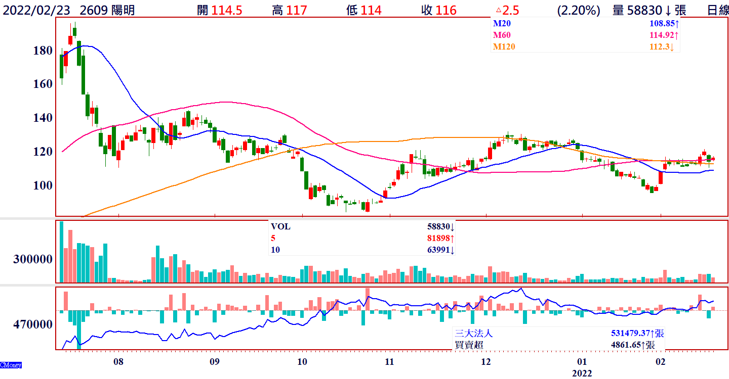 若以第四季SCFI運價指數平均報價約4670點,高於第三季平均報價4281點,加上長榮2021年第四季營收約1560億,優於第三季營收1445億,陽明2021年第四季營收約1034億,優於第三季營收954億,長榮和陽明去年第四季每股應可賺16~20元,全年EPS估45~50元。