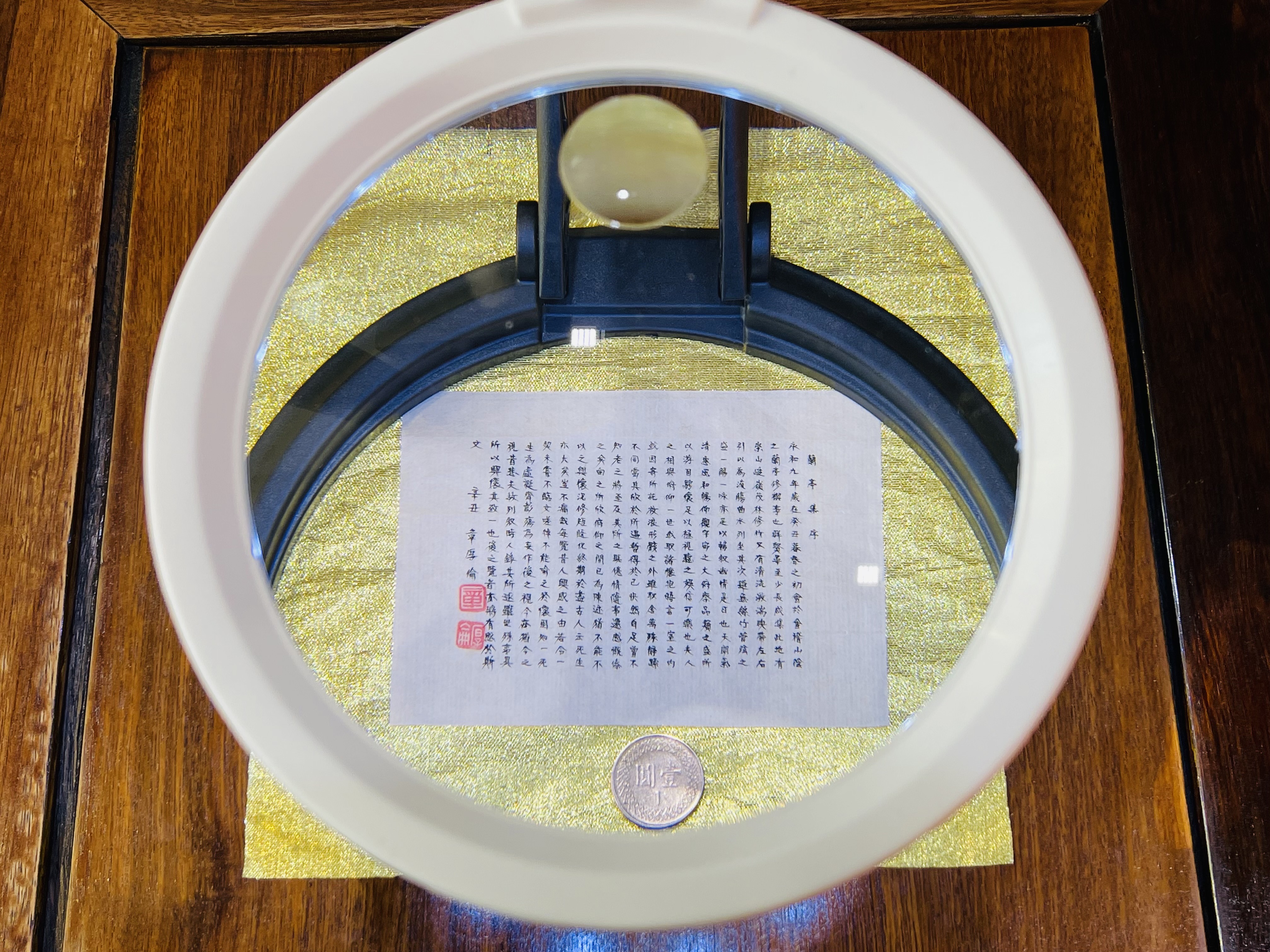 另外,章厚倫(圖左)也提供六件微楷書書法作品展出,包括道德經、金剛般若波羅蜜經、金剛般若波羅蜜經(紅字)、地藏菩薩本願經、菩提道次第廣論及論語等,這六件作品展期至3月25日止。希望台灣中油員工在繁忙之餘,亦能抽空接受藝術的薰陶,讓書法成為生活中的一項美學。