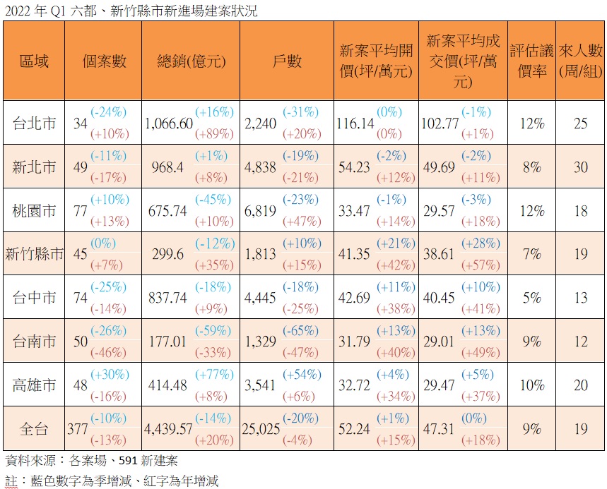 【理財周刊記者顏瓊真報導】政府打房威力強,根據591新建案統計,全台Q1總銷金額為4439.57億,季減1成4,但年增約2成;至於房價則是「沒有最高,只有更高」,除台北市外,其餘新北、桃竹及中南部等地,在原物料價格波動及基本面需求旺盛等因素作用下,新建案開價無論季增或年增,都有1到4成的漲幅,相當驚人。