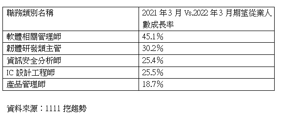 1111人力銀行發言人黃若薇表示,因近年來AI人工智慧漸漸興起,不單是科技半導體業,許多產業都會要求軟體工程,學習更多有關數據分析的語言,例如PYTHON、C++等,如果有機器學習的領域基礎,更受到科技大廠和金融業的歡迎,身價不僅水漲船高,也更具有從業競爭優勢。