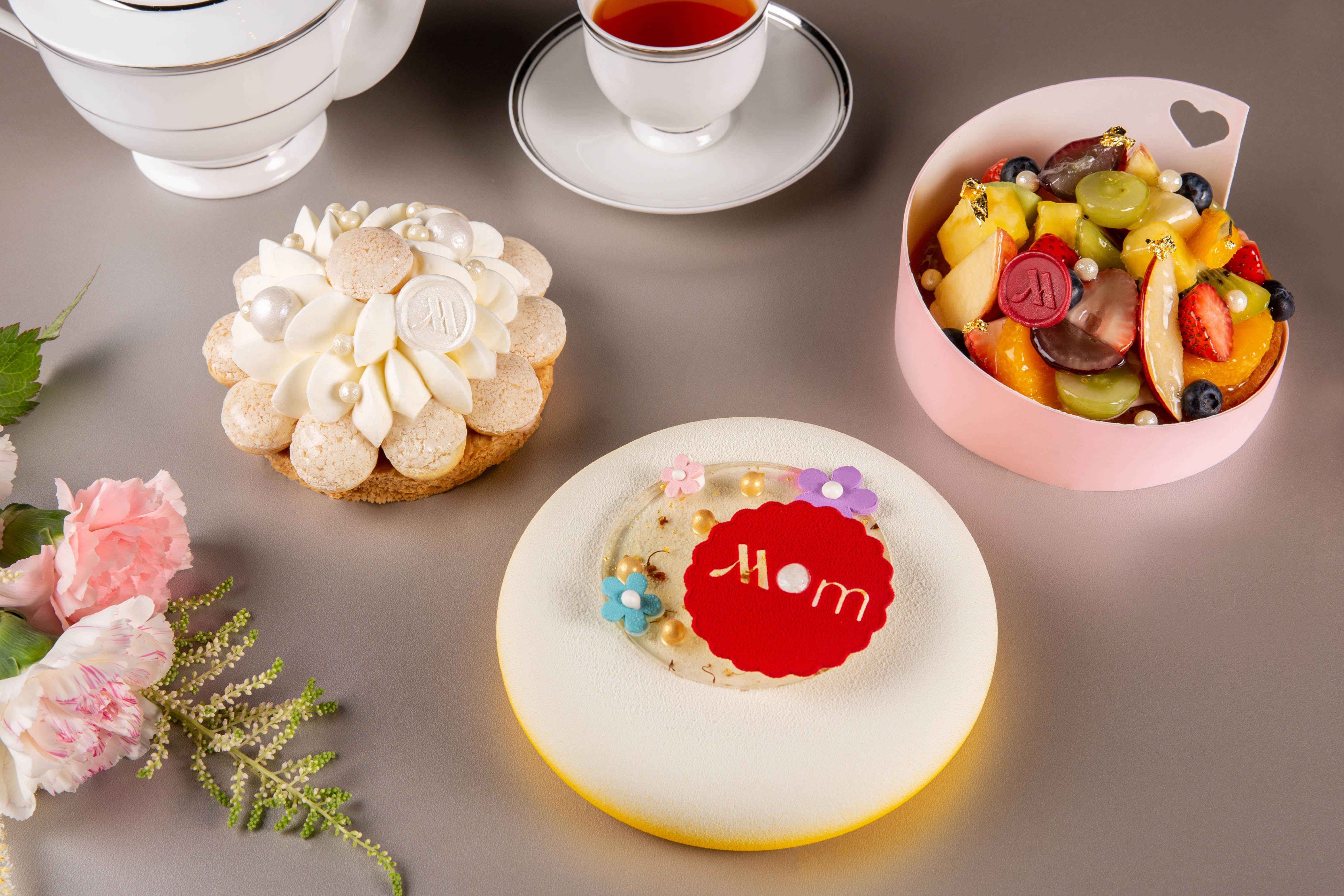 健康首選「桂花鳳梨檸檬優格慕斯」5吋每顆980元;洋溢夏日風情、以水果珠寶盒概念設計的「繽紛水果塔」4吋每顆980元;經典質感法式「珍珠聖多諾黑蛋糕」4吋每顆880元,為母親節獻禮提供典雅大器的選擇。