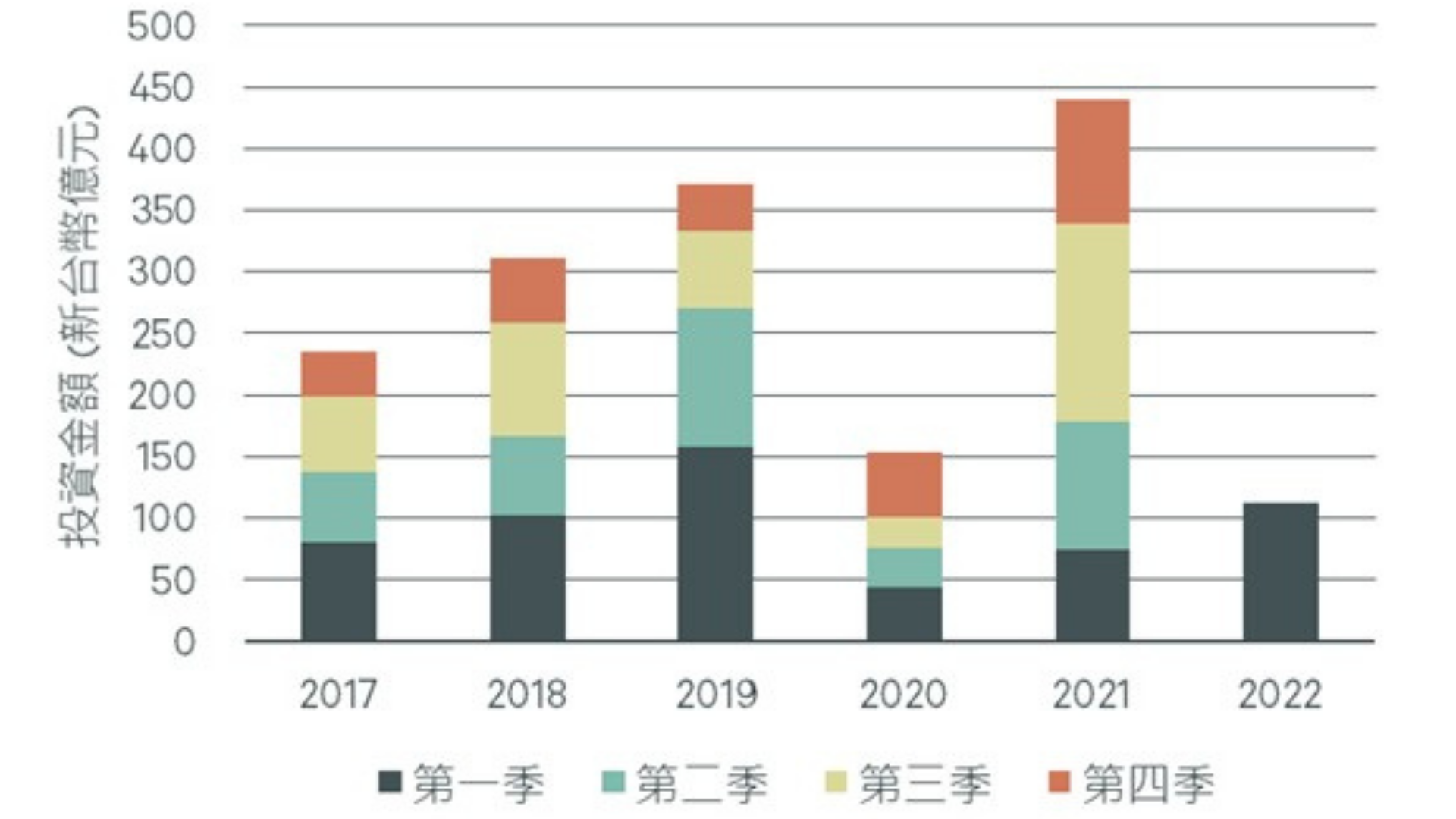 據世邦魏理仕台灣統計,今年第一季全台大型不動產投資市場,維持去年熱絡情況,總投資額(含土地及商用不動產)達新台幣880億元,創下20年來同期第三高。