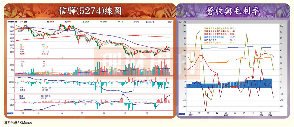 其實,5G、電動車、物聯網等終端應用市場向上發展趨勢,現階段仍舊未見改變,Amazon、Google、Microsoft等科技大廠,因而持續擴大資料中心(data center)建置規模,加以信驊目前已強勢奪下全球BMC市場,市占率高達六○%以上水準。因此,即便公司短期營運受到逆風影響,長期而言,信驊營運仍舊可望持續穩健向上。