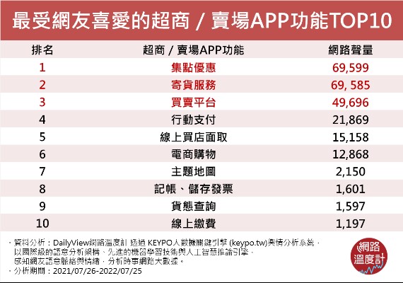 今天就讓《DailyView網路溫度計》透過《KEYPO大數據關鍵引擎》輿情分析系統,帶你一起來看看最受網友歡迎的10大APP功能,究竟是哪些方便好用的設計成功擄獲顧客們的心呢?